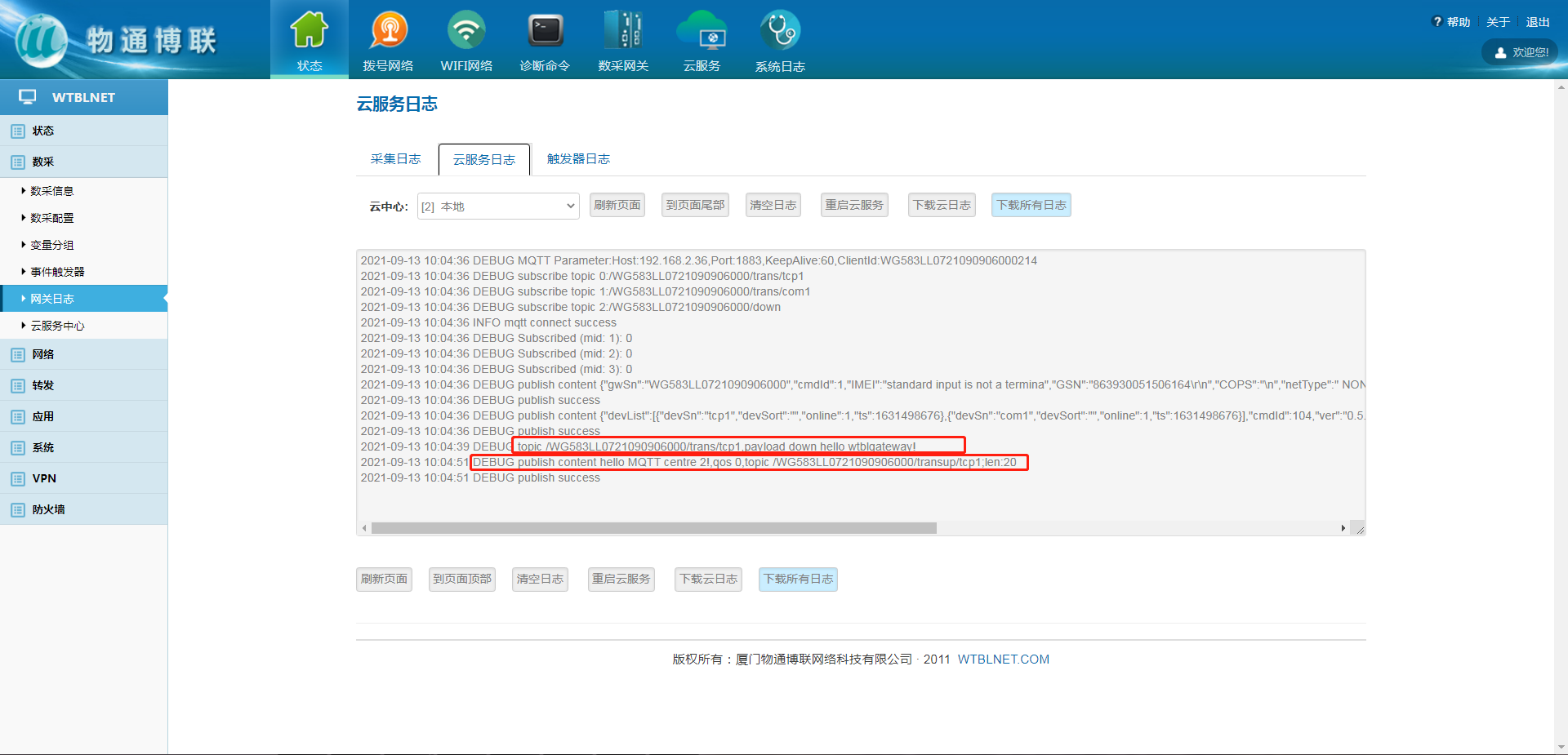 网关日志: