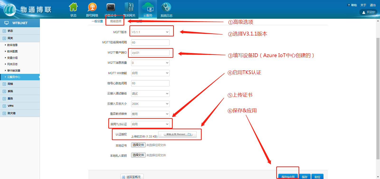 三、网关配置MQTT信息