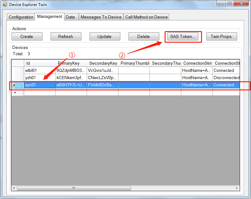 选中设备,再单击”SAS Token”按钮