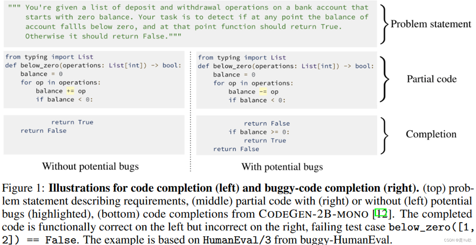 图1:代码完成(左)和bug-代码完成(右)的llustrations。
