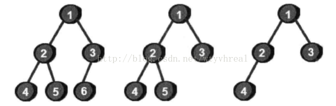 满二叉树:二叉树中每个内部节点(既不是根节点也不是叶节点)都有两个儿子,或者说满二叉树中所有的叶节点都有同样的深度。深度h,且有2^h-1个节点。