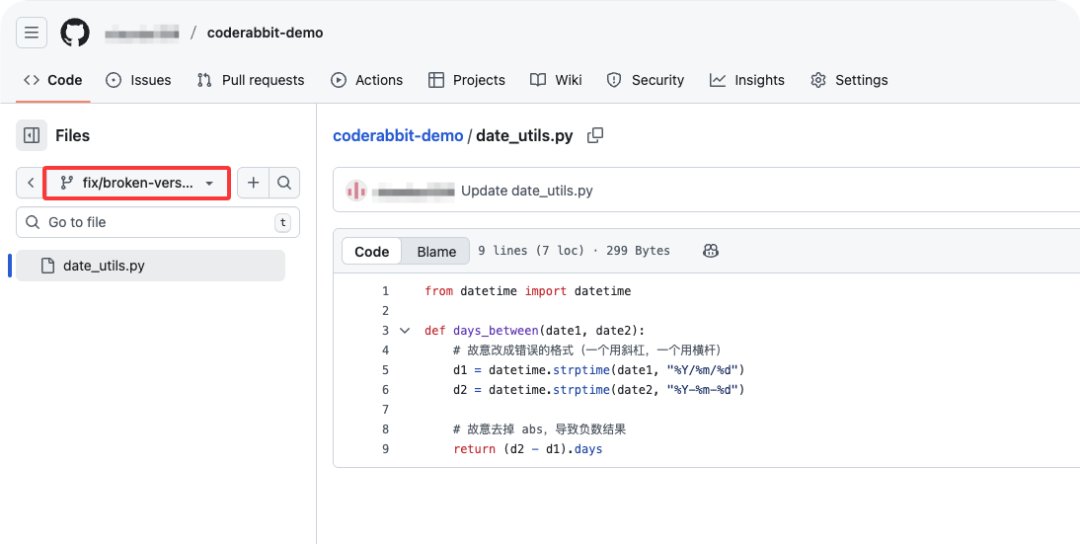 为了让 CodeRabbit 有事情可做,需要人为制造 2 个 bug + 1 个不规范写法。