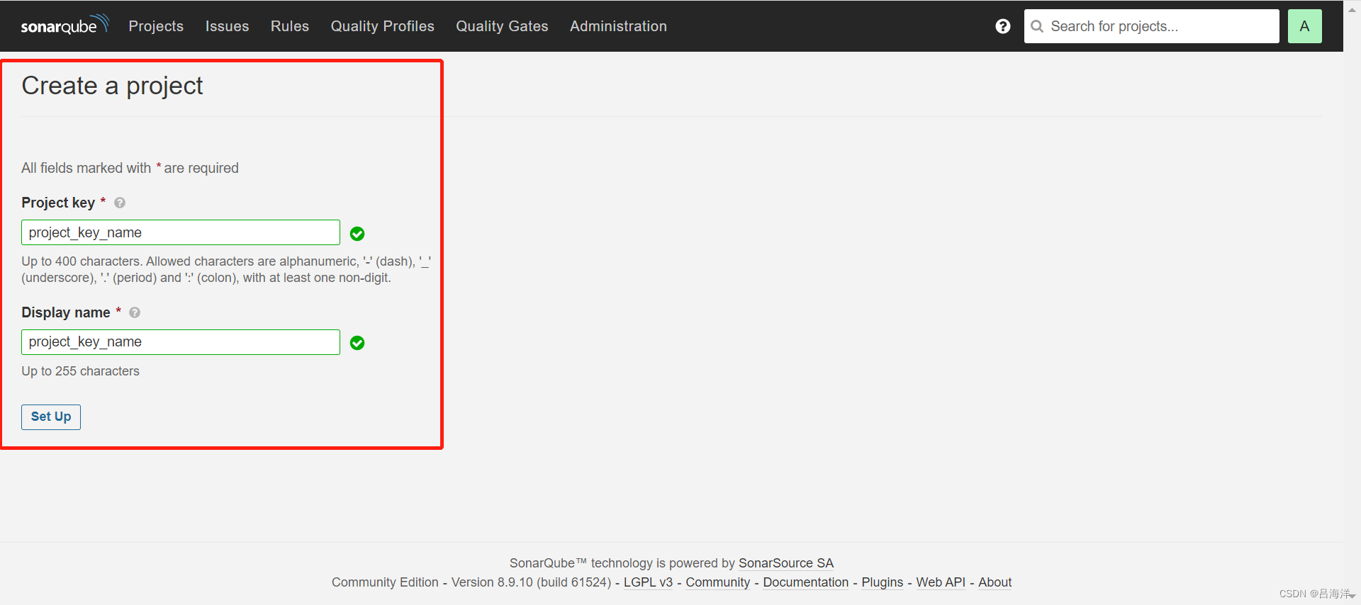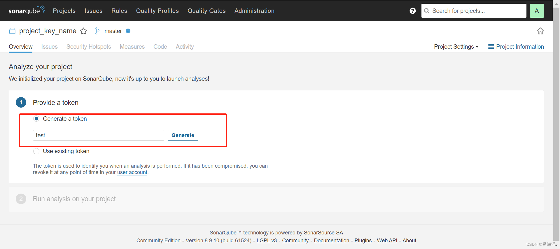 project key 随便起一个名字,记住这个名字后面做代码检查的时候会用到