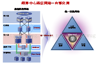 超算中心网络易用性解决方案就是一体化网络设计方案,通过CEE(增强以太网)技术和标准IP协议融合前端、计算、存储和管理四张网络,消除网络技术割裂所来的种种弊端。可以有效的简化网络层次、轻松部署、降低TCO。
