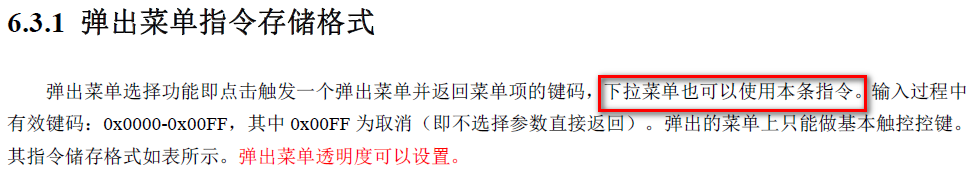 手册触摸控件章节,并没有下拉菜单按钮,但是有下面这句话: