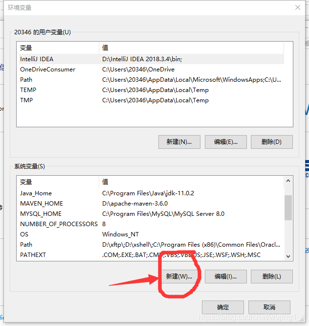2.1 新建用户变量: JAVA_HOME jdk 安装的目录