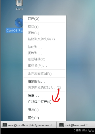 3. 在桌面找到光盘图标,右键,选择“在终端中打开”