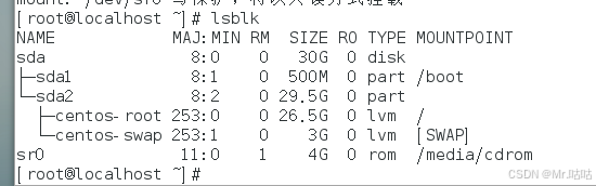 lsblk 查看光盘文件名为sr0