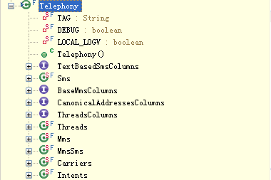 第二类:与电话操作相关数据类,包括:Telephony,它是个特殊的类,隐藏类