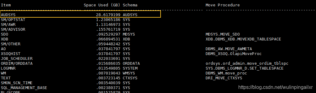 schema_name "Schema", move_procedure "Move Procedure" FROM v$sysaux_occupants