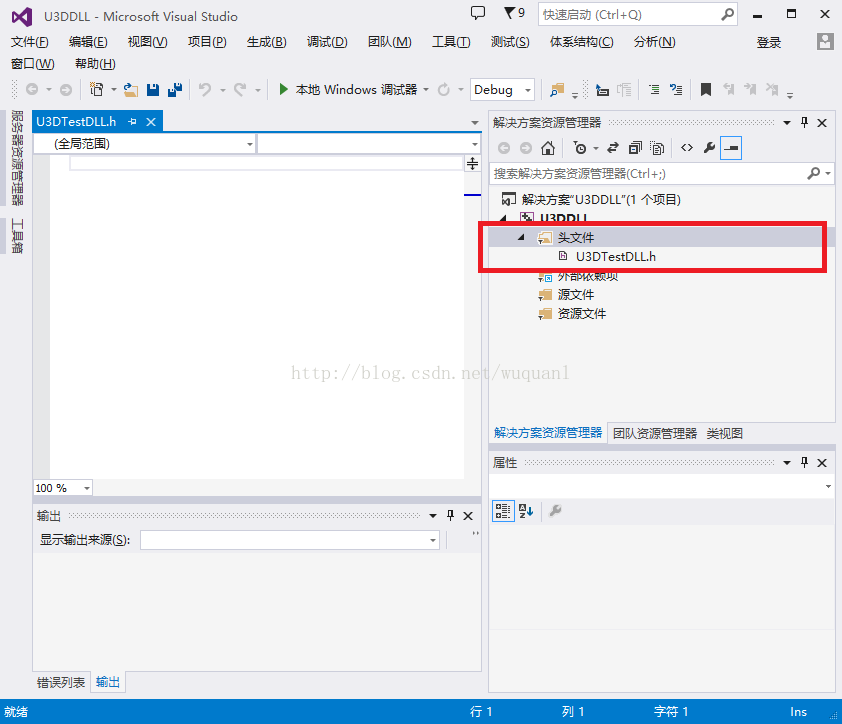 3.新建头文件,命名为U3DTestDLL.h,并添加如下代码