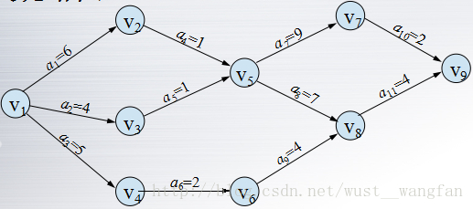 二.关键路径(操作带权的有向AOE-网(Activity on Adge:用边表示活动,边上的权值表示活动持续的时间,顶点表示事件,事件表示在它之前的活动全都完成了)):