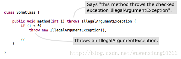 (5)、throws:用在方法签名中,用于声明该方法可能抛出的异常。