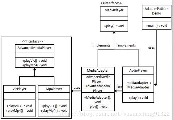 我们想的AudioPlayer播放其他格式。要达到这一点,我们已经创建了一个实现的MediaPlayer接口的适配器类MediaAdapter并使用AdvancedMediaPlayer对象,来播放所需的格式。