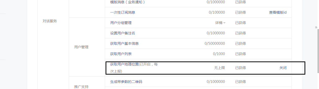 第三步: 公众号左边栏,开发->子栏目:接口权限