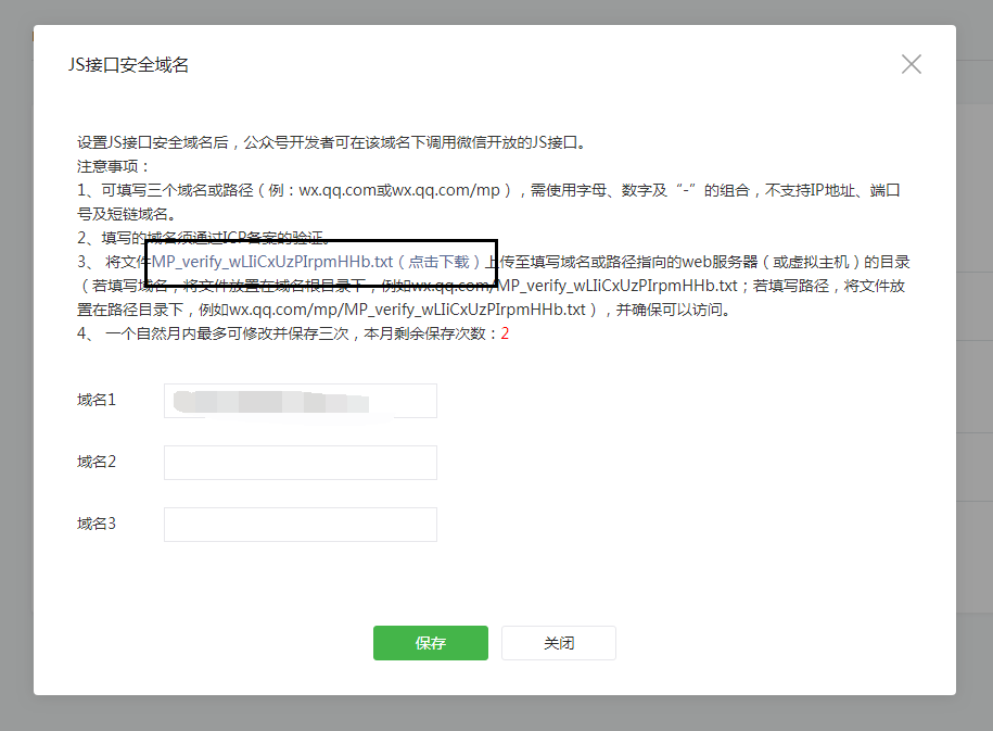 然后在配置js安全域名同样将要下载的txt文件放到项目目录也可以是二级目录, 如果放到二级目录域名后面要就目录路径哦