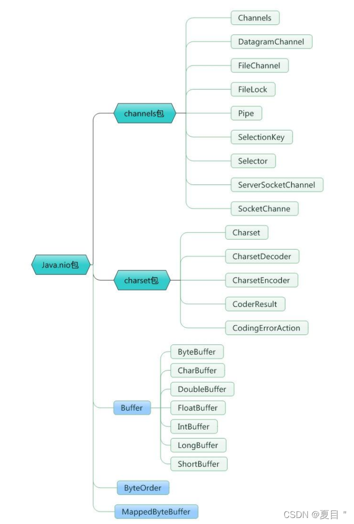在 NIO 中,Buffer 是一个顶层父类,它是一个抽象类,常用的 Buffer 的子类有: ByteBuffer、IntBuffer、 CharBuffer、 LongBuffer、 DoubleBuffer、FloatBuffer、 ShortBuffer