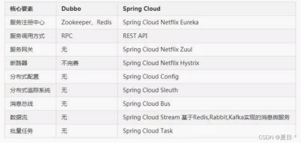 Dubbo 和 Spring Cloud 区别