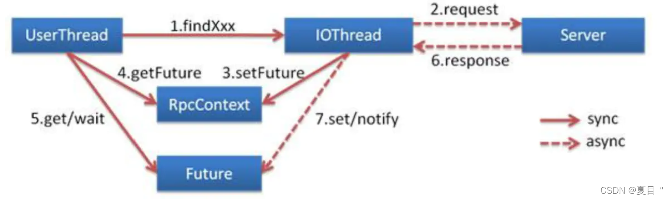 默认是同步等待结果阻塞的,支持异步调用。