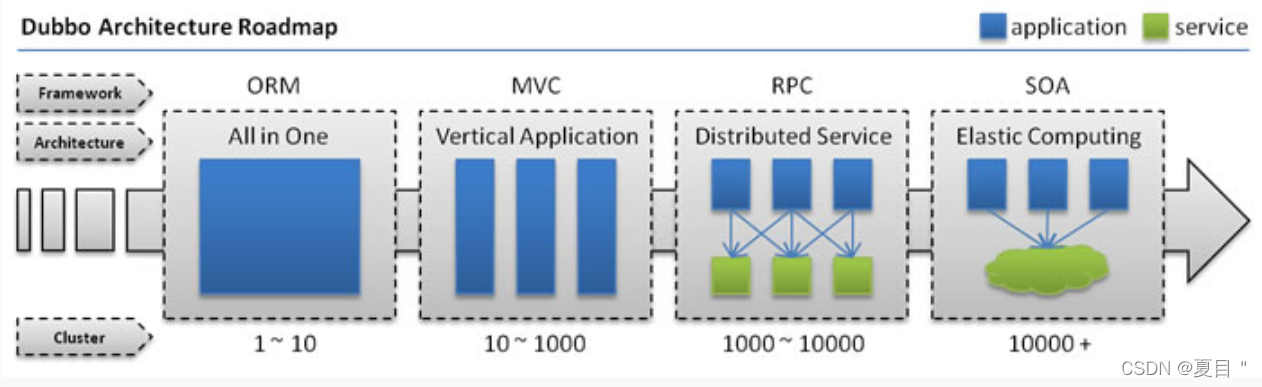 使用 Dubbo可以将核心业务抽取出来,作为独立的服务,逐渐形成稳定的服务中心,可用于提高业务复用灵活扩展,使前端应用能更快速的响应多变的市场需求