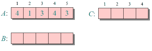 下图给出了对{ 4, 1, 3, 4, 3 }进行计数排序的简单演示过程