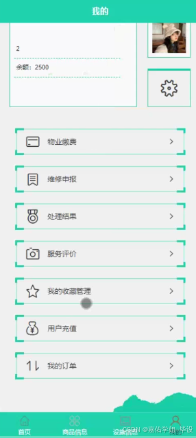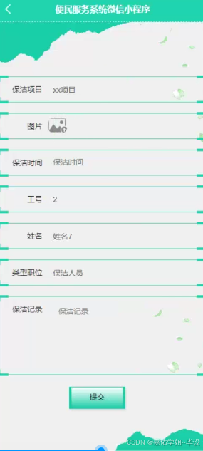 - 开发完成便民服务系统微信小程序:实现居民信息管理、商品展示、维修申报、物业缴费、服务评价等核心功能。