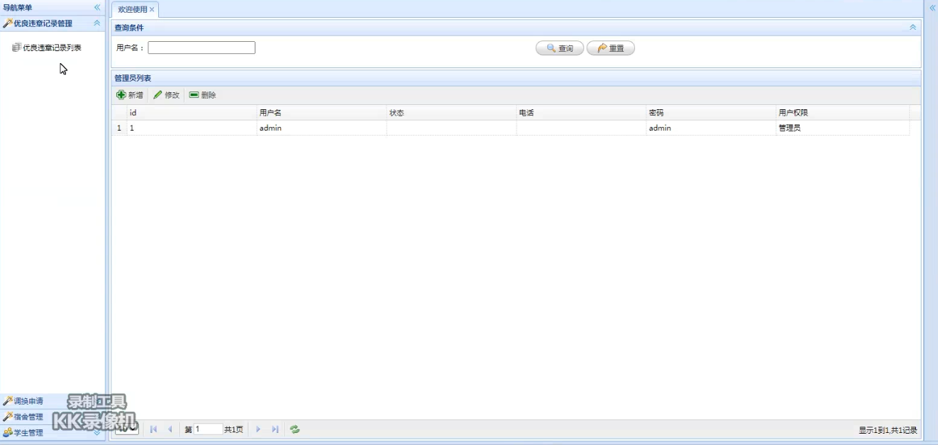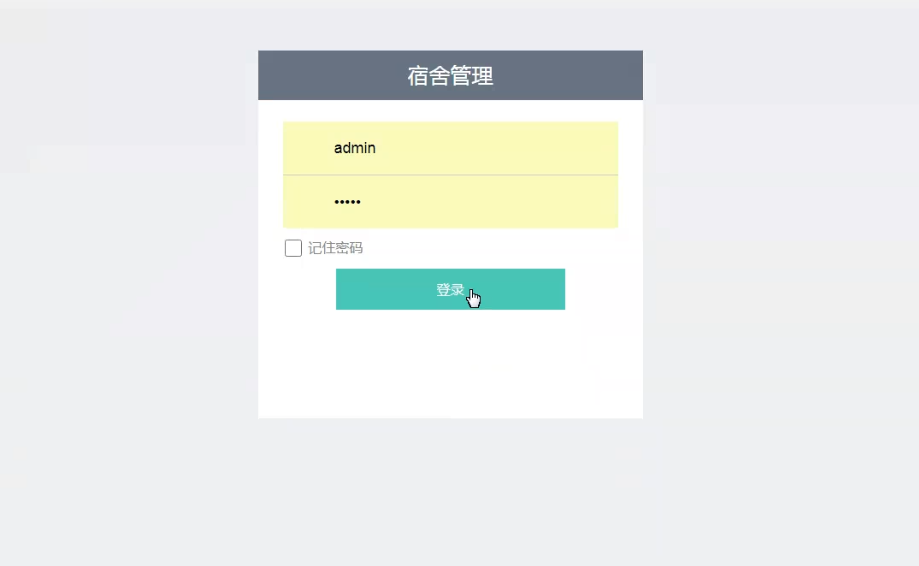 后台功能模块:学生管理、宿舍管理、宿舍申请审核管理、公告记录管理和用户登录及系统设置。