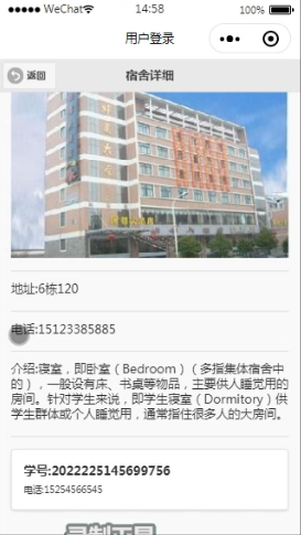 本系统以解决高校学生宿舍的相关信息,通过公告发布、住宿申请和审核通过等流程一揽子解决宿舍管理人员在处理业务中遇到的各种难题信息,并实现宿舍信息的线上通知,实现线下手工办理到线上自动化处理的方式改变。本系统通过前台微信小程序模块和后台管理模块的异步并行操作,一方面可以方便前台用户能够随时浏览查询宿舍,并进行及时查询各种通知;另一方面,后台管理员可以随时处理前台申请的住宿和换宿信息,并进行审核处理。还可以在同时进行申请调换宿舍的过程中,方便后台管理员各项业务信息的查询和统计,这些都可以极大的提升用户各项信息处理效率,提升用户使用该项宿舍管理系统的感知。