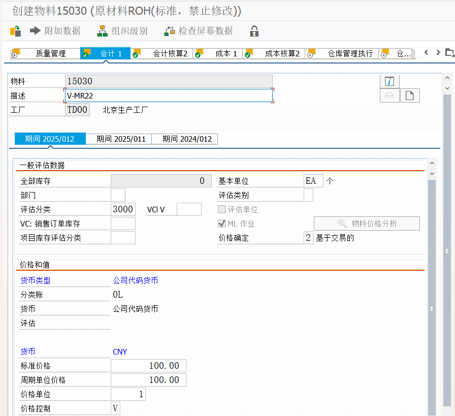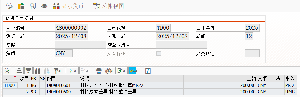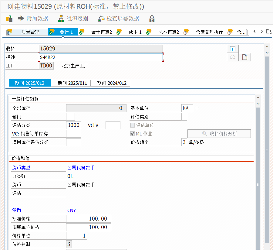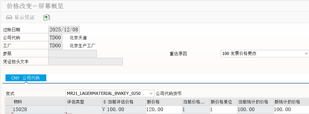 总结: 使用MR22更改S物料价格,会使库存价值发生变化,价格更改产生的差异,通过OBYC-PRY进入库存,达到改变库存价值的目的