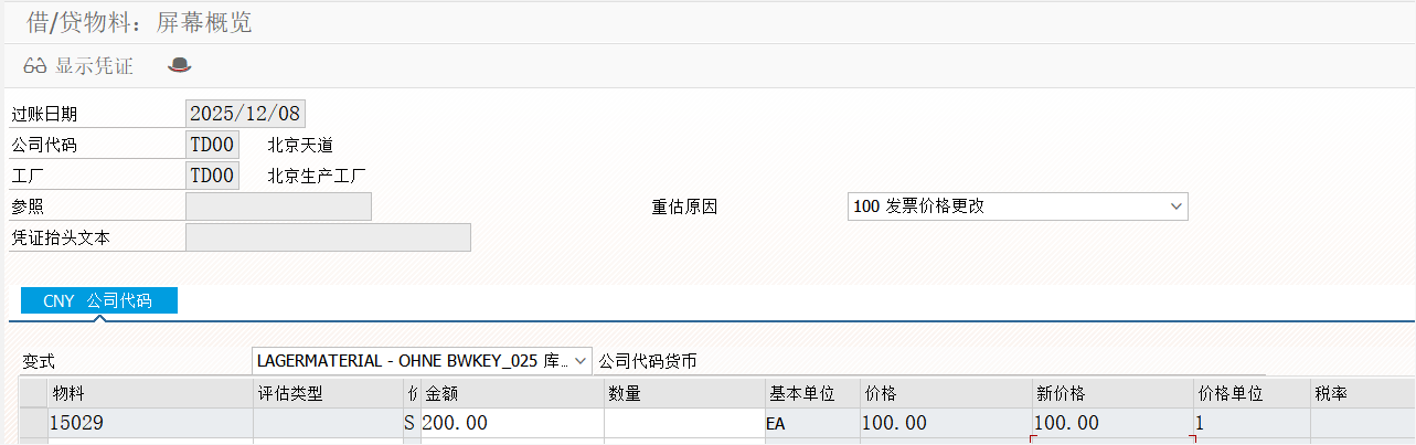 总结:使用MR22更改V物料价格,会使库存价值发生变化,价格更改产生的差异(OBYC-UMB)留在差异科目,不还原。