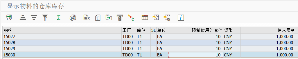查看库存报表,库存分别为10个,库存价值分别为1000