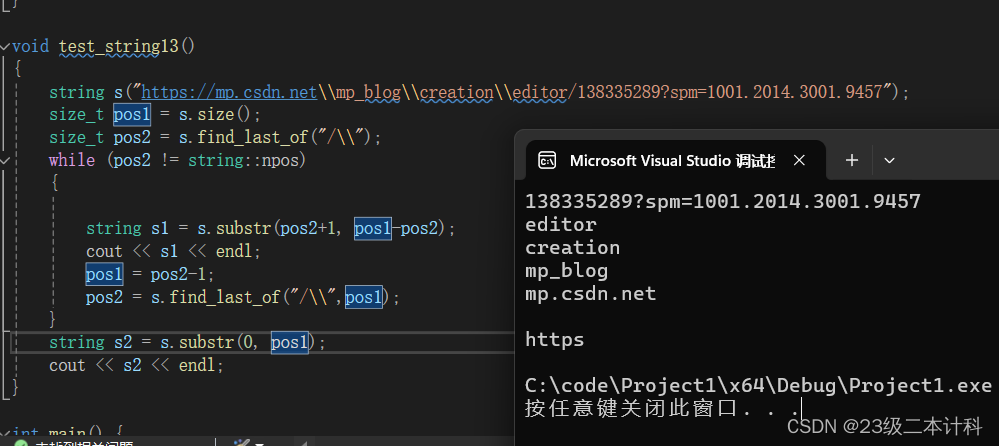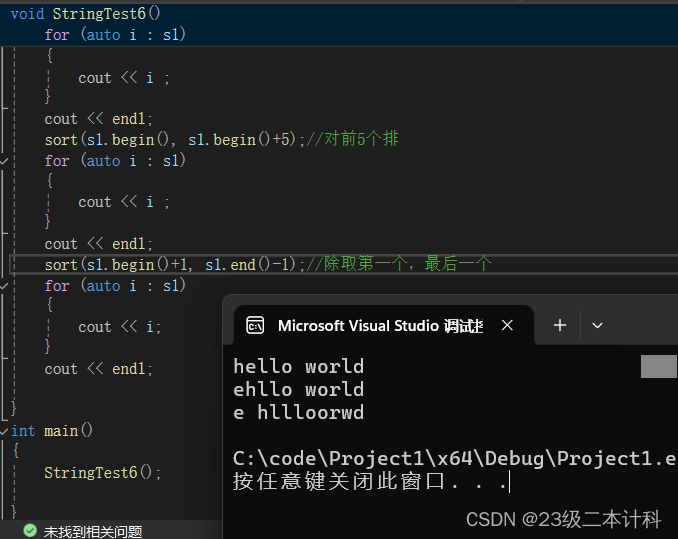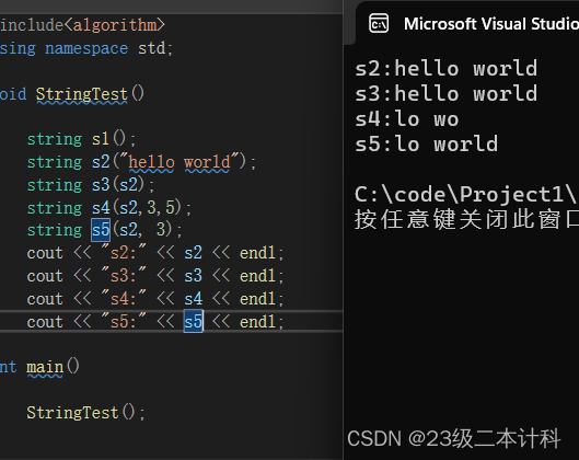 (可以看作begin指向第一个字符,end指向最后一个字符的下一个位置)