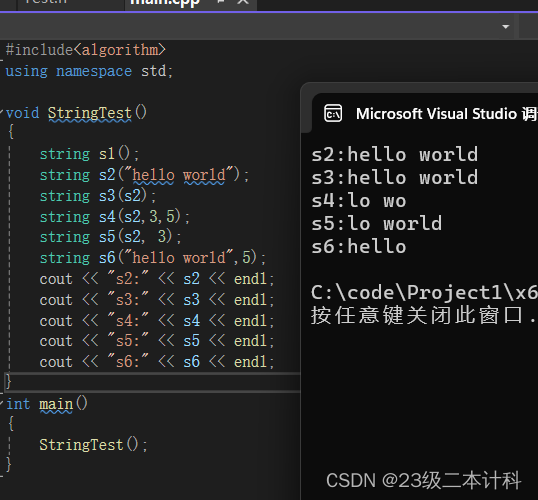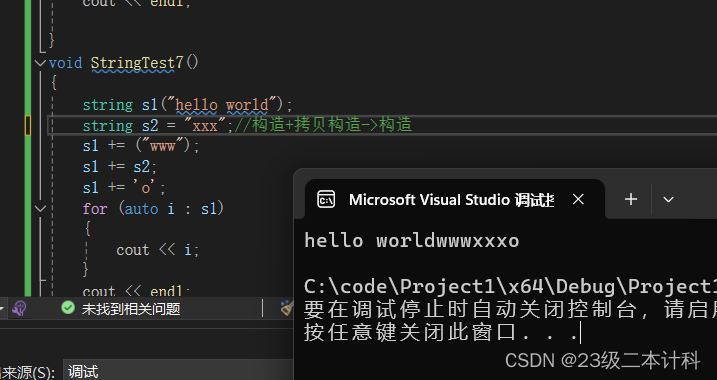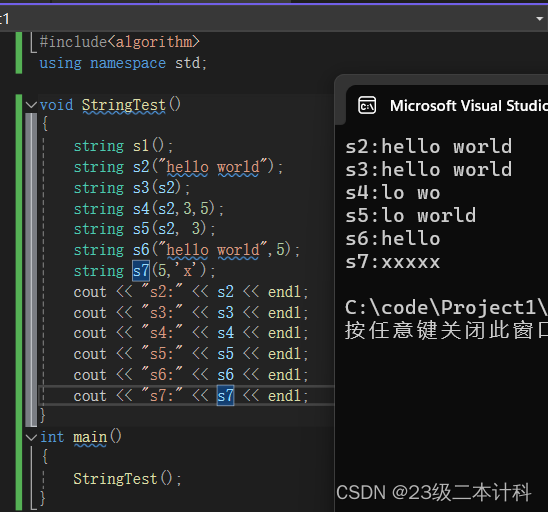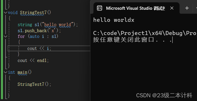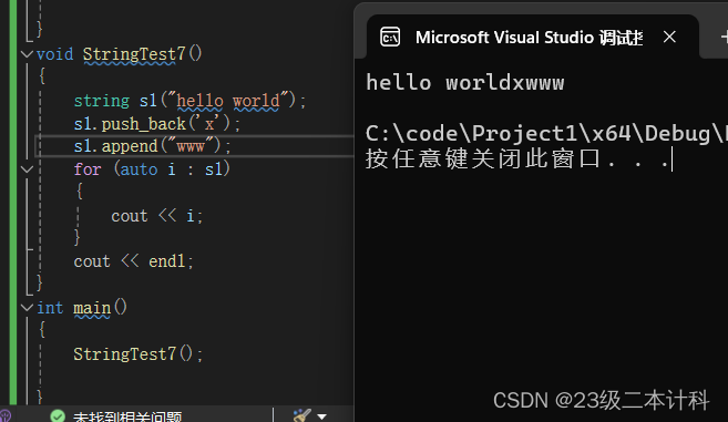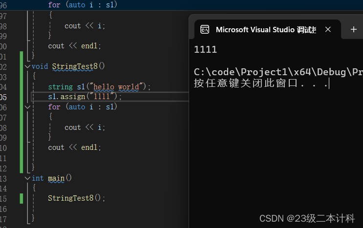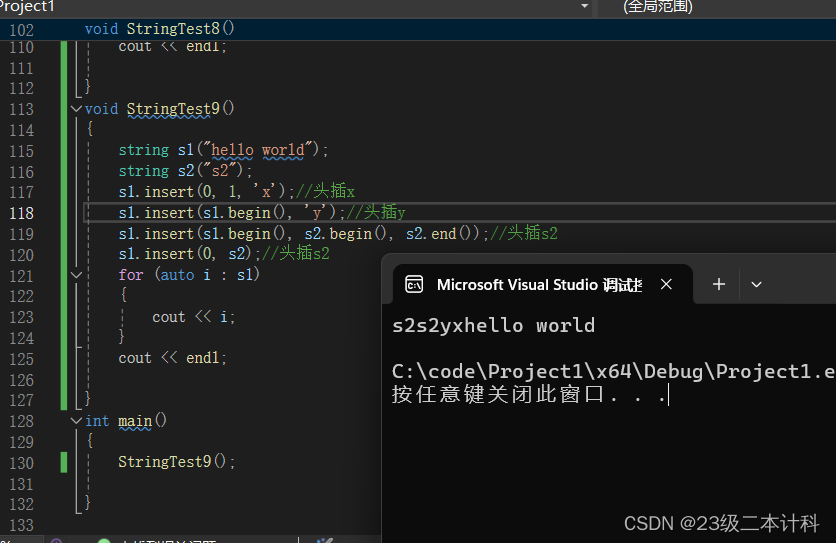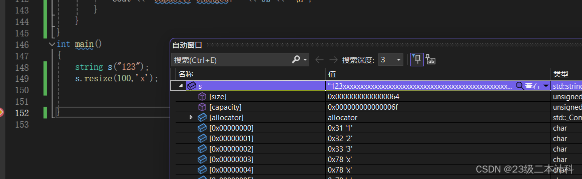 可以看到,s.resize(100,'x') ,不仅改变了size,还实现了扩容 改变了capacity