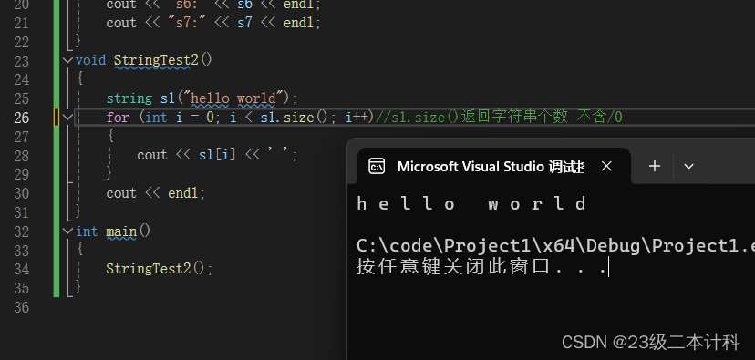 遍历字符串的第一种方式: (s1.size() 返回s1字符串的字符个数)