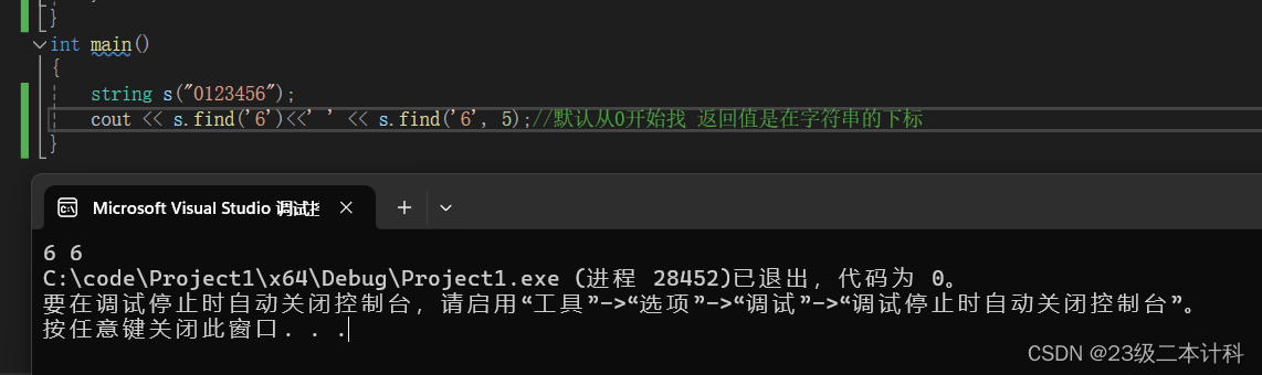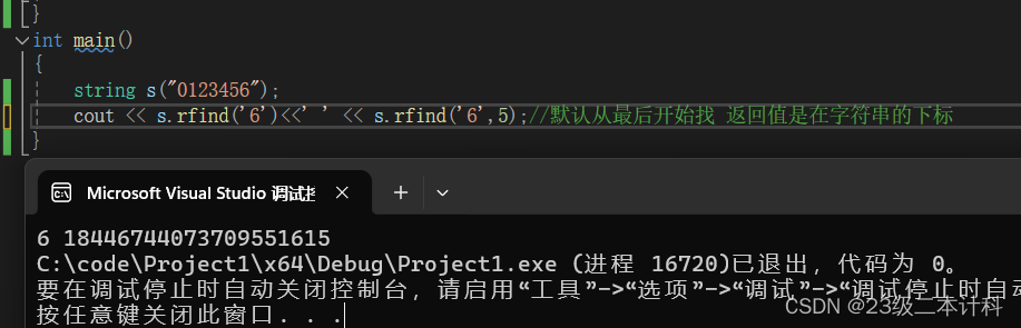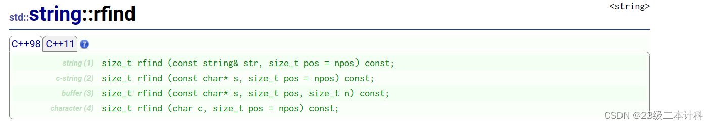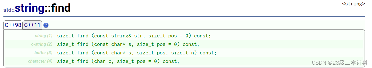 从字符串pos位置开始往后找字符c,返回该字符在字符串中的位置(找不到返回 npos 也就是整型最大值 无符号-1)