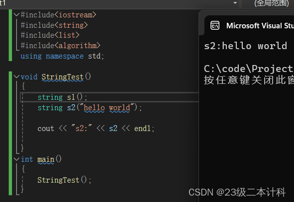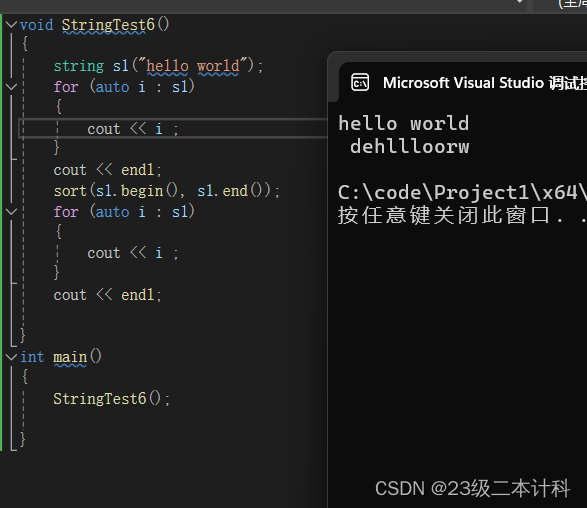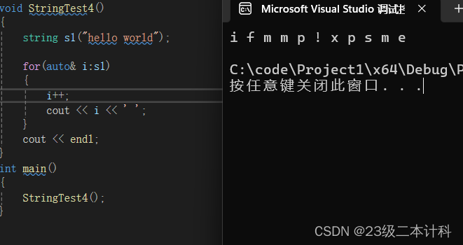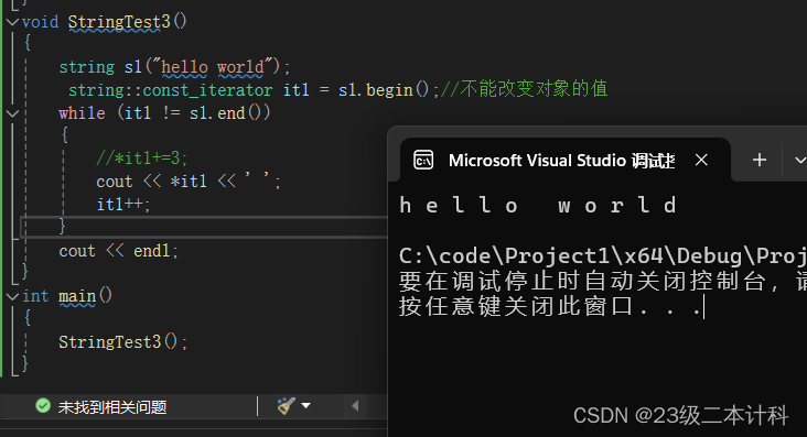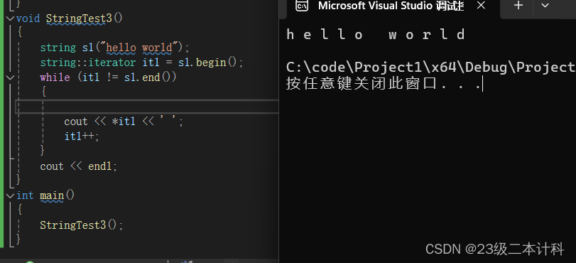 begin获取一个字符的迭代器 + end获取最后一个字符下一个位置的迭代器.