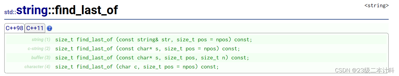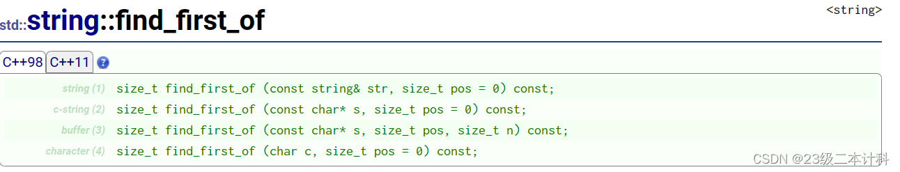 从字符串pos位置开始往后找 字符串中所含的任意一个字符 ,返回该字符在字符串中的位置(找不到返回 npos 也就是整型最大值 无符号-1)