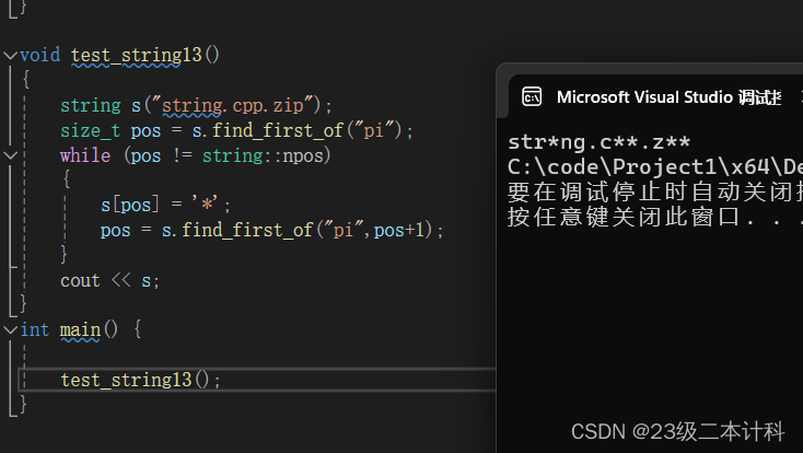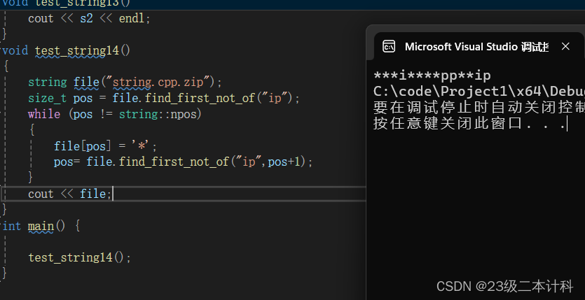 与find_first_of不同的是,find_first_not_of找的是不是字符串中的字符