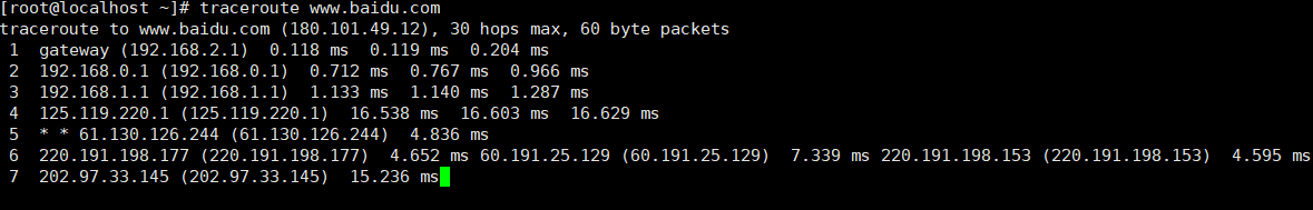 打印出可执行程序主机,一直到目标主机之前经历多少路由器。