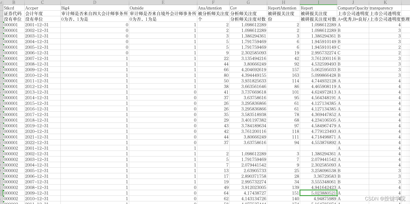 点击下载:2001-2022年A股-分析师关注度-被研报关注度-上市公司透明度-是否四大审计