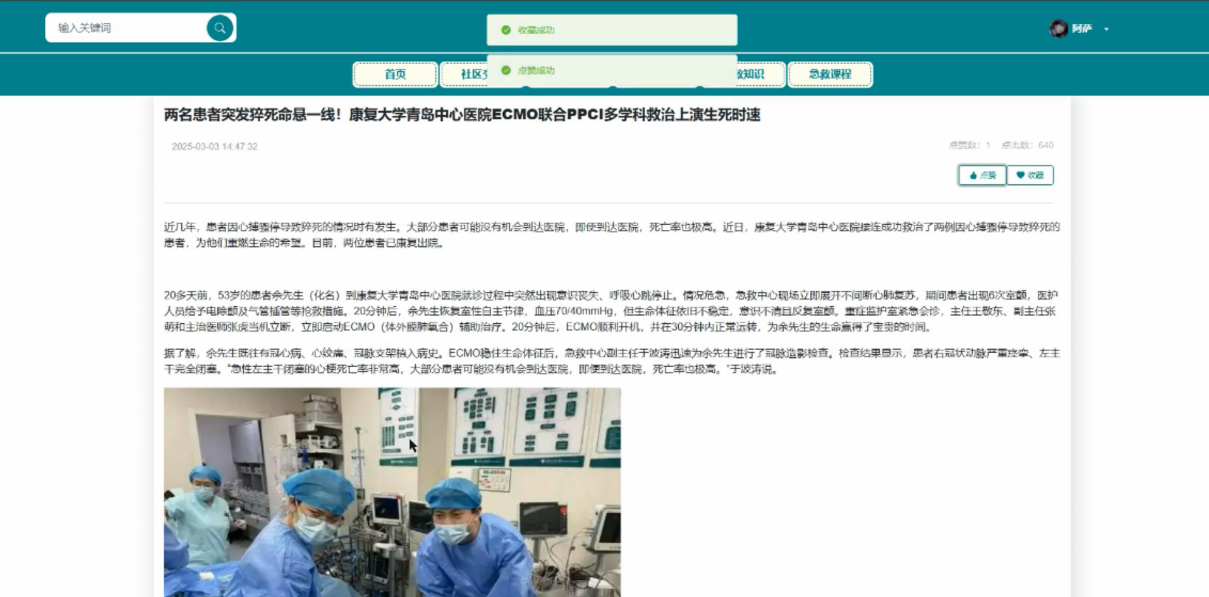 对于用户而言,急救知识学习模块集成了从基础到高级的各种急救课程,支持视频、图文等多种形式的学习资料,使不同层次的用户都能找到适合自己的学习资源。急救方法查询功能让用户能够快速获取特定情况下的应对措施,无论是心肺复苏、创伤处理还是中毒急救等,都能得到详尽指导。而且平台还提供社区交流功能,这促进了用户之间的互动与经验分享,形成一个互动学习的急救知识社群,提升了整体社会的应急响应能力。