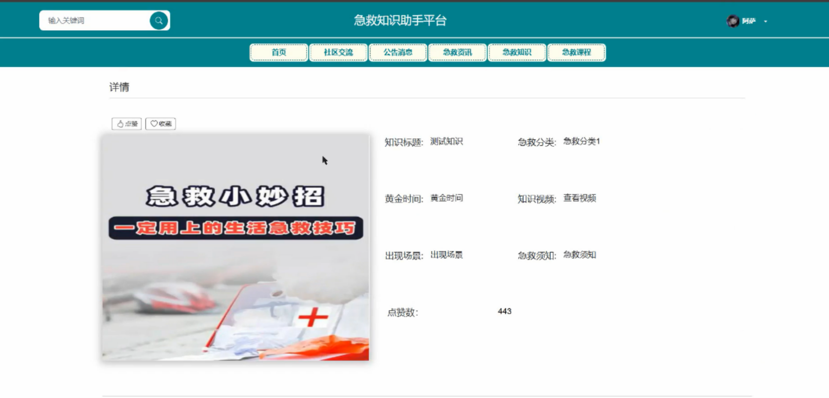 | 查看急救课程测试 | 登录系统 进入急救课程页面 点击课程详情查看完整信息 | 无 | 符合预期 |