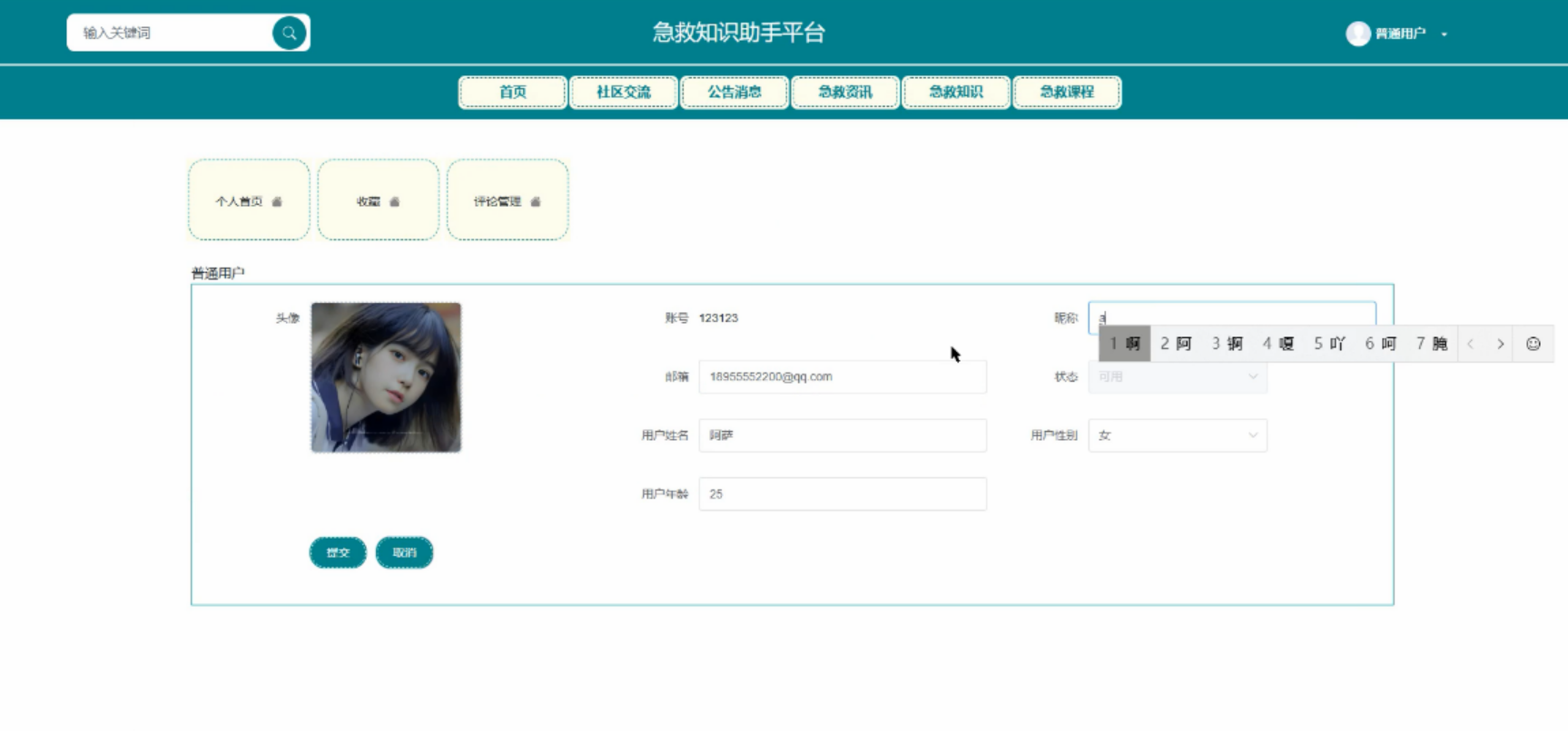 包括个人首页、收藏的急救资源、课程和评论管理等,便于用户管理自己的急救学习进度与互动记录。个人中心界面如图5-5所示。
