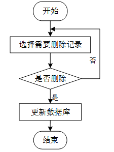 用户选择需要删除的记录后,系统判断是否确认删除。若未确认,返回选择环节;若确认删除,则更新数据库,删除对应记录,完成操作后流程结束。删除信息流程图如图3-8所示。