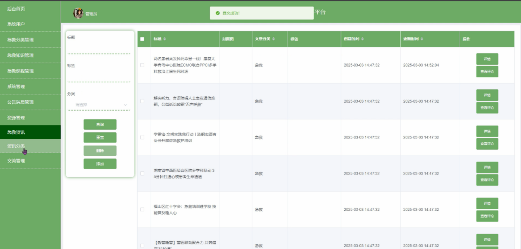 管理急救资讯的发布和分类,确保资讯内容的规范性和及时性。资源管理界面如图5-7所示。
