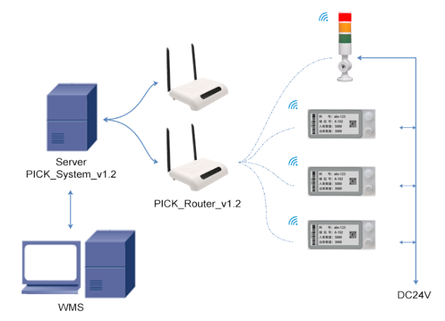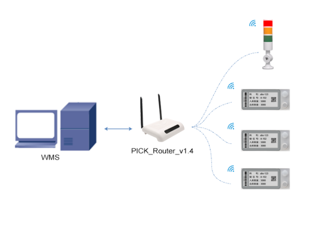 电子标签拣货系统就是通过PC机或扫描枪发送指令,通过路由器转发,控制电子标签上的LED灯或屏幕指引拣货人员准确,快速地到指定的位置拣取相应的货物。