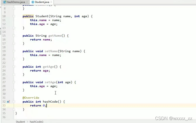 - 默认情况下,不同对象的哈希值是不同的。而重写hashCode()方法,可以实现让不同对象的哈希值相同