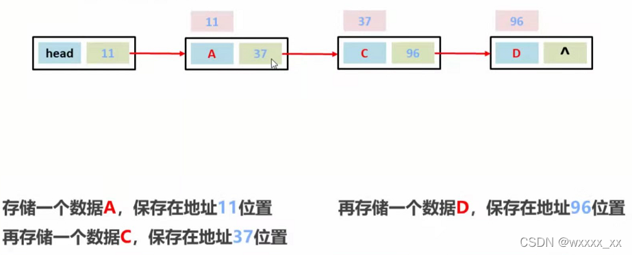 链表是一个增删快,查询慢的模型(对比数组)链表存储数据的方式