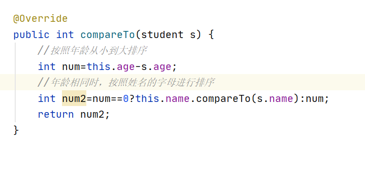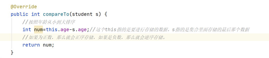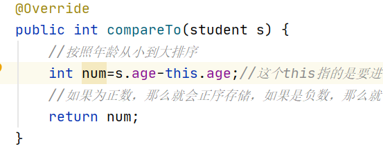 把compareTo方法的返回值进行修改,实现按照年龄从大到小进行排序