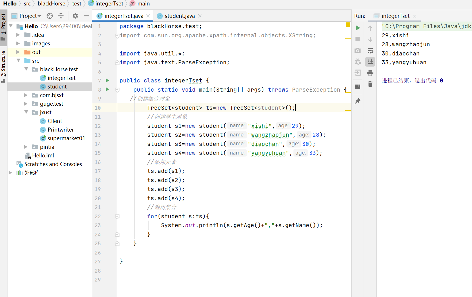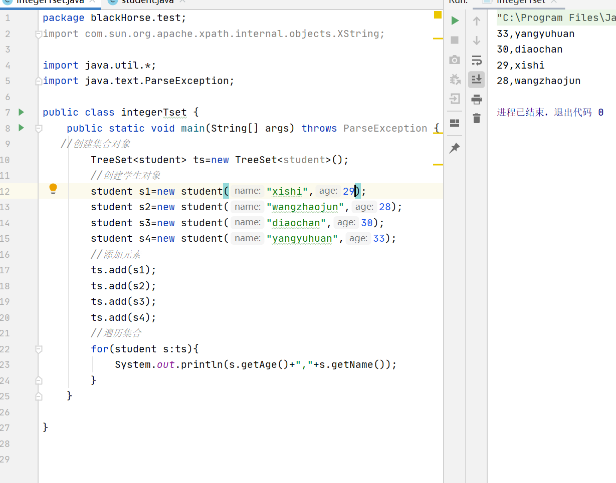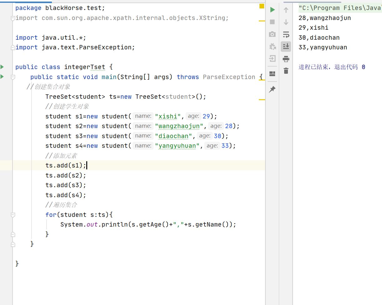 把compareTo的return值进行修改,实现按照年龄从小到大遍历输出